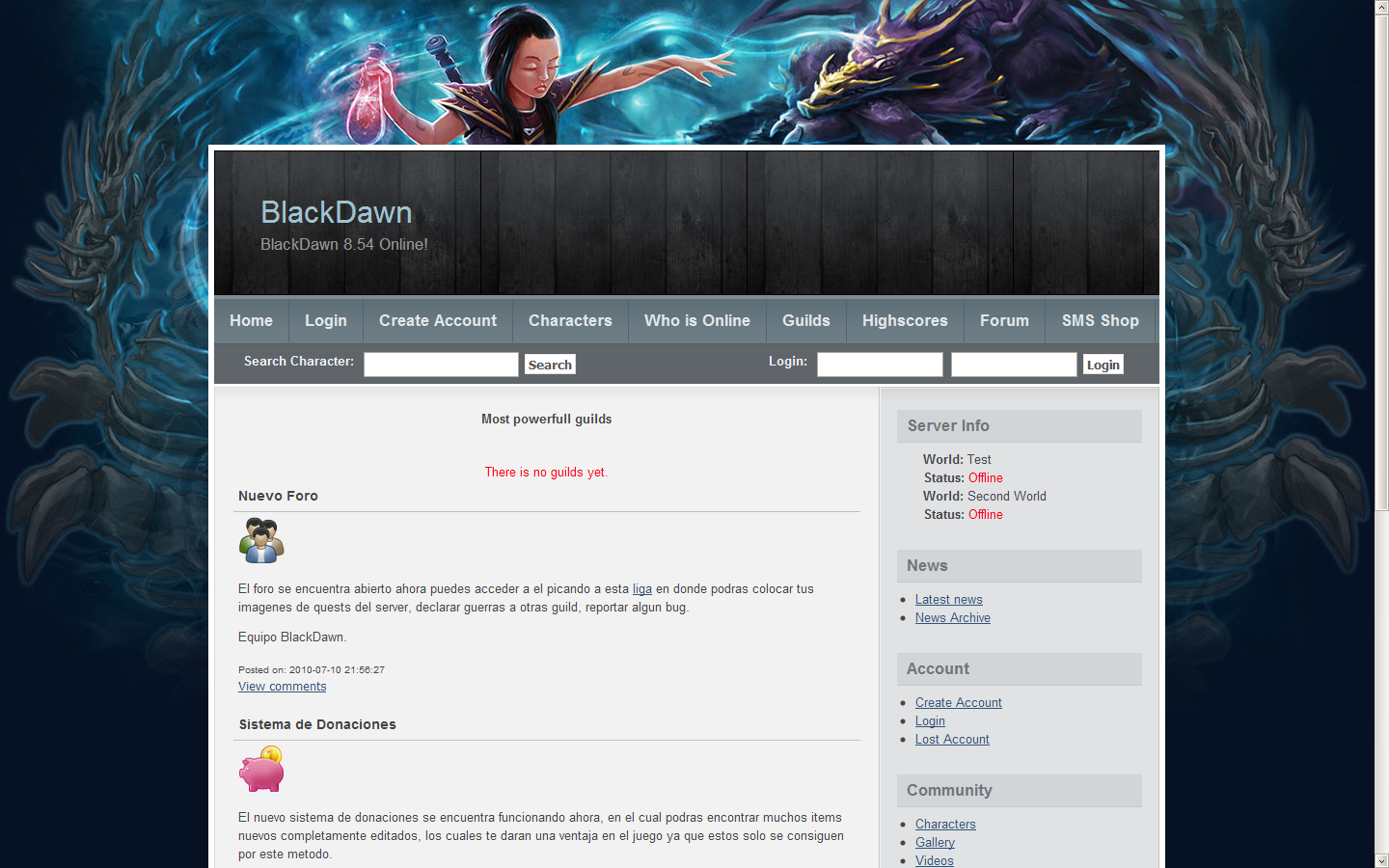 Aqui un ejemplo de una pagina creada con ModerACC, el resultado que se obtiene es bastante bueno aparte de que es completamente diferente a la web de Tibia. Se le pueden agregar nuvos scripts como con el gesior para obtener mejoras en la web, ya sea mostrando mas informacion como una lista de muertes o el equipo que lleva un player. Funciona con un sistema mas seguro, y con un codigo mas limpio que el gesior osea que cuenta con menos bugs, pero todo esto hace que sea mas dificil de modificar.